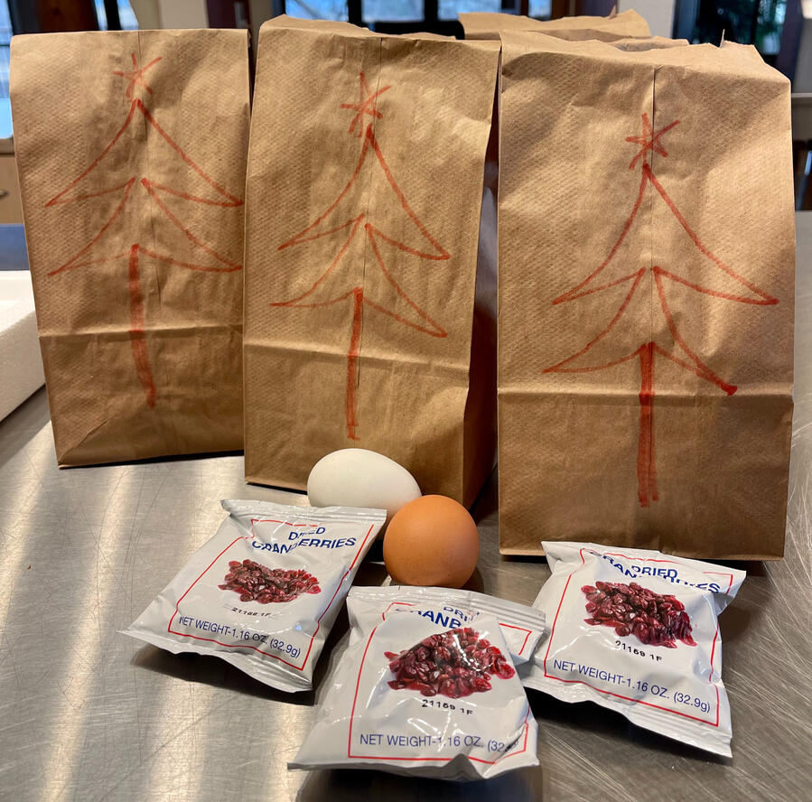 Yes. Desserts, soft bars, fruit, bottled water, hard-boiled eggs, bananas, cuties, travel size toiletries, hand wipes, hand warmers. Home-made desserts, like cake, need to be sliced and individually wrapped. Cookies can be put directly into the lunch bags. Leave the shells on hard-boiled eggs.